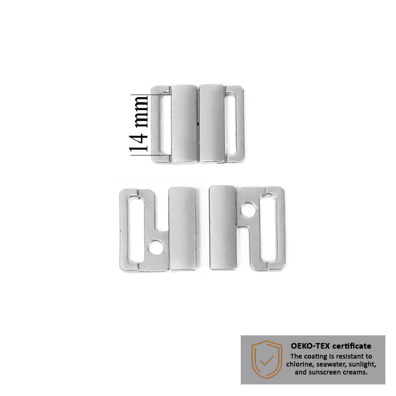 Cierres de bikini 14 mm en color Plata 1000 ud - Certificados OEKOTEX